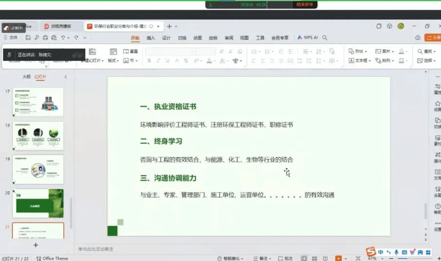 第三位分享的是尹朝阳。尹朝阳2008年就读于伟德1949官网,现就职于四川省生态环境科学研究院,任固体所副所长。尹朝阳学长从环境学科就业方向的角度出发,为同学们分析了各个职业选择的优势,帮助同学们梳理不同职业的工作内容和所需要的条件,分享他在就业时的经验和想法。他特别强调了同学们要发挥学习的主观能动性,培养终身学习的观念,主动积极学习行业最新的政策和方法,紧跟国家发展步伐,以此来提高职场竞争力。