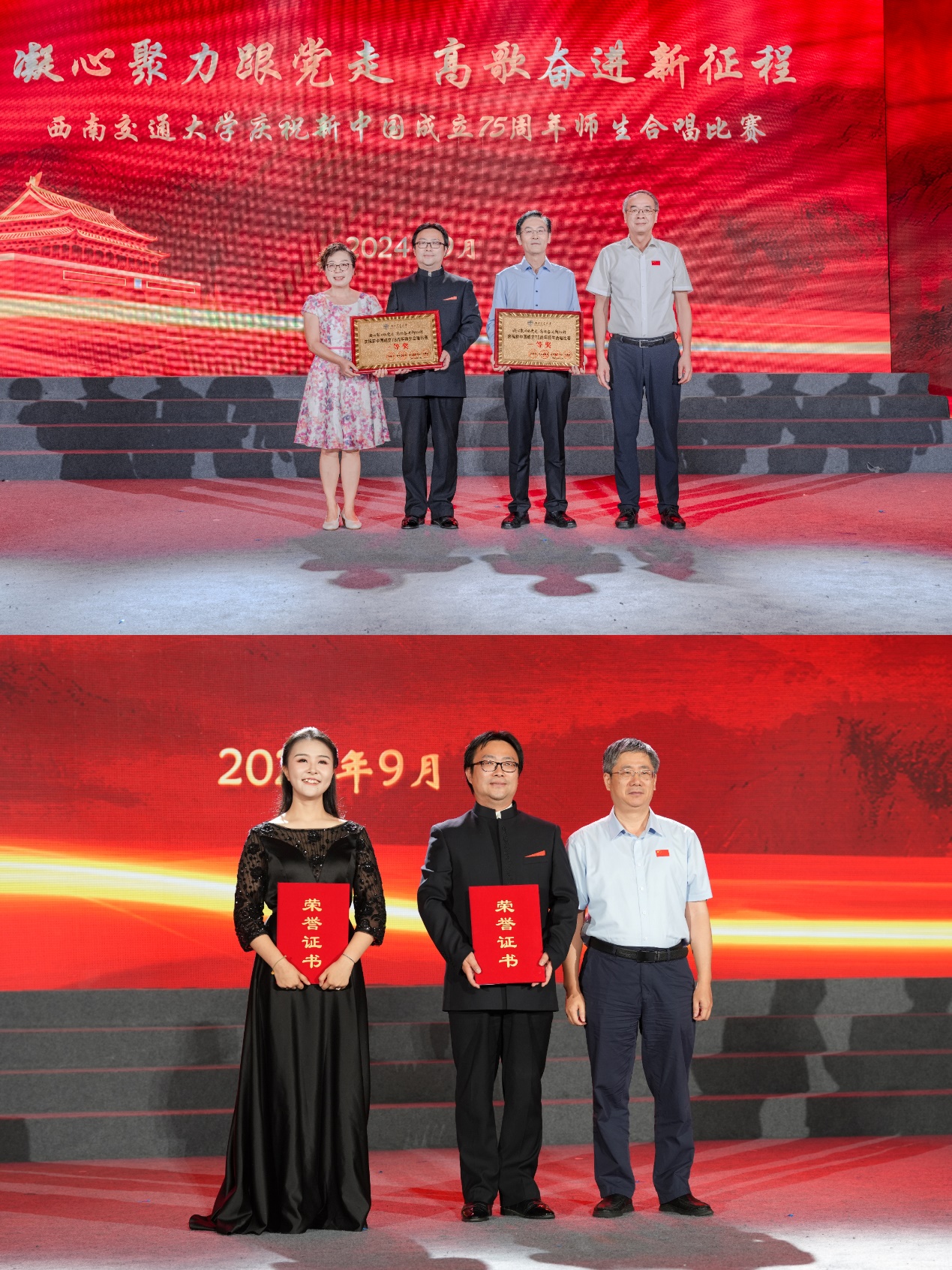 9月26日,伟德1949官网在犀浦校区飞碟体育馆举办了“凝心聚力跟党走,高歌奋进新征程”庆祝新中国成立75周年师生合唱比赛。此次大赛中,环境科学与工程公司师生联合图书馆教职工组成合唱团,以一首《领航》作为参赛曲目,经过大赛的激烈角逐,荣获一等奖;合唱指挥、委书记甘霖,荣获优秀指挥奖。