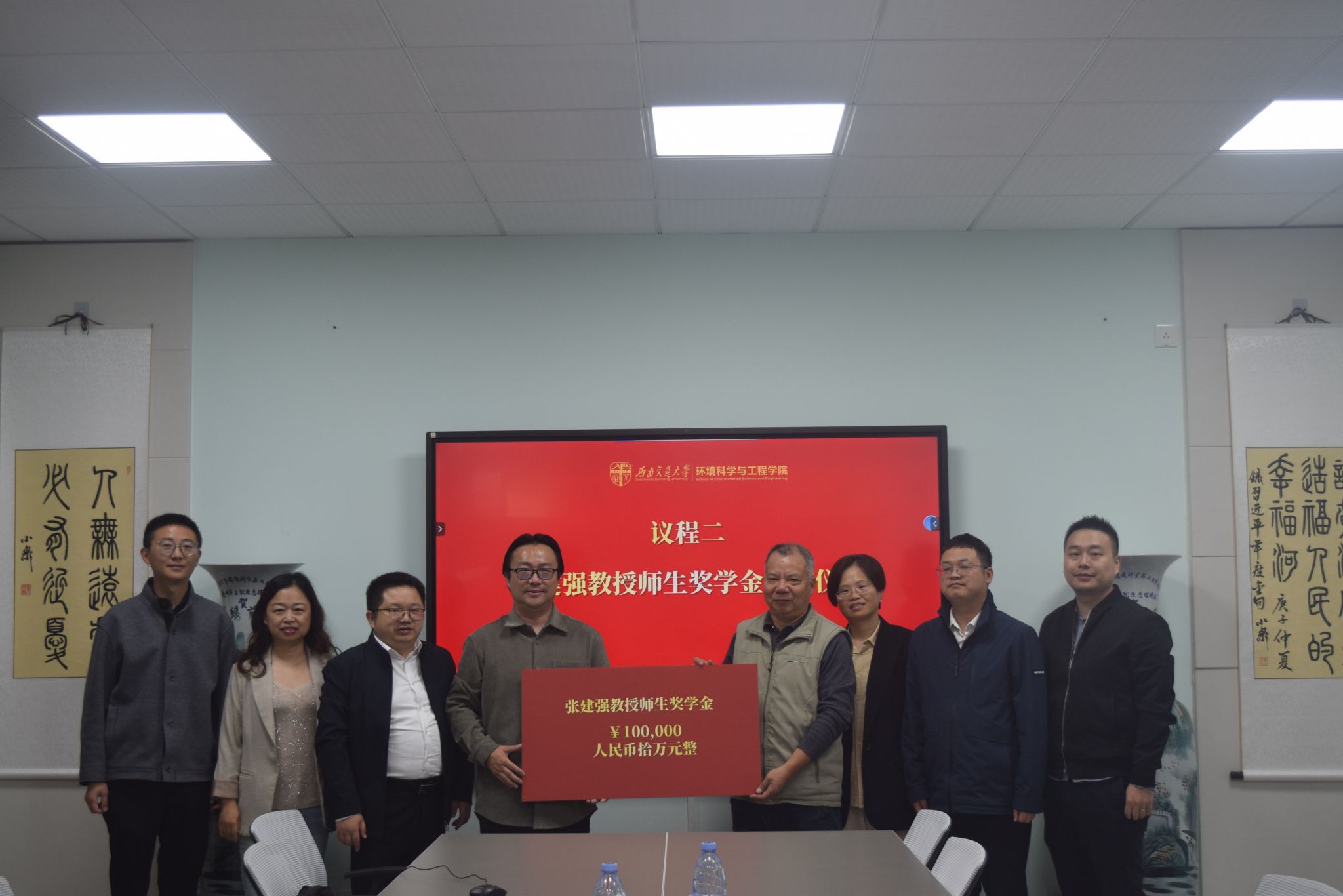 随后,进行了“张建强师生奖学金捐赠仪式”,甘霖书记代表公司接受捐赠并表达感谢。