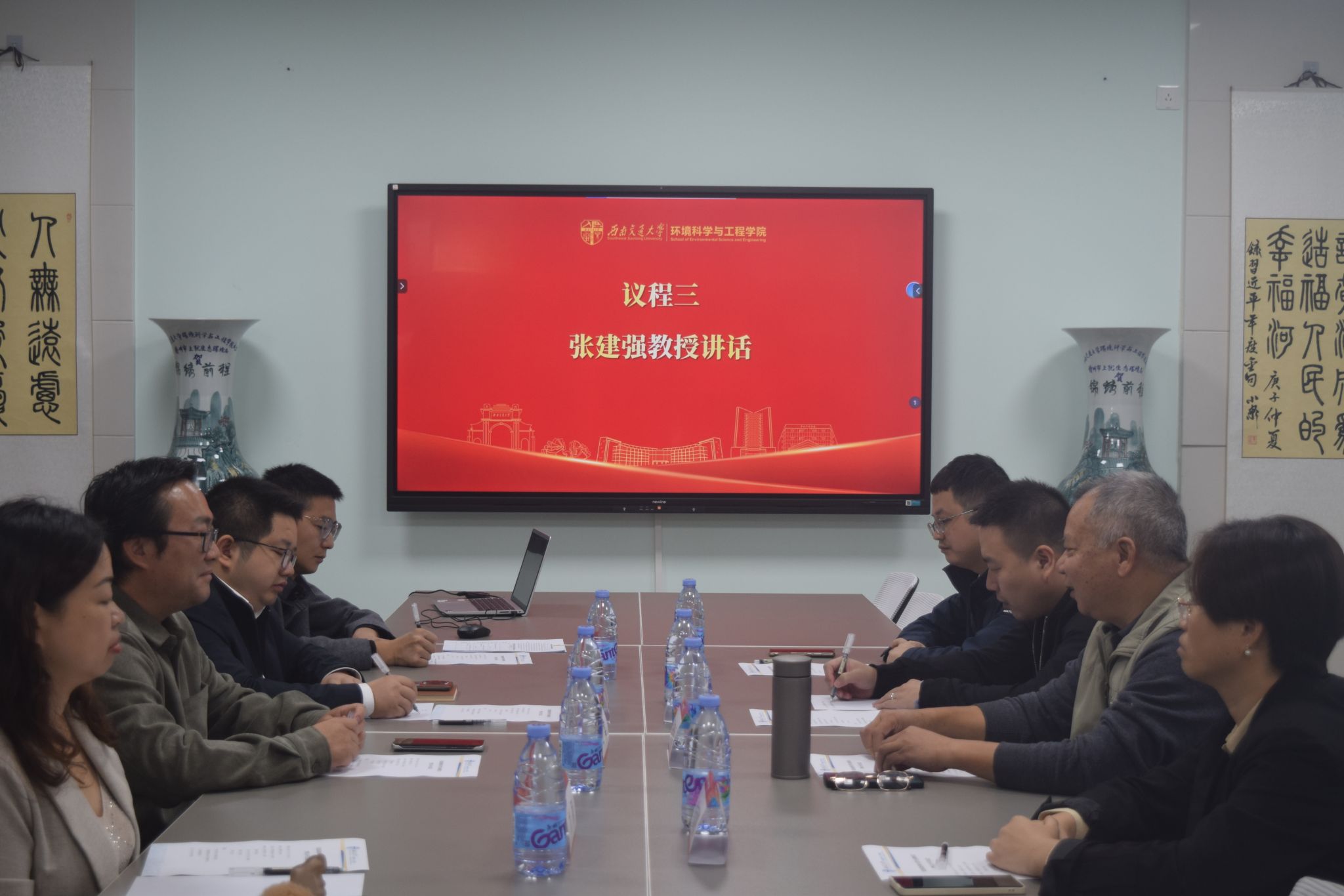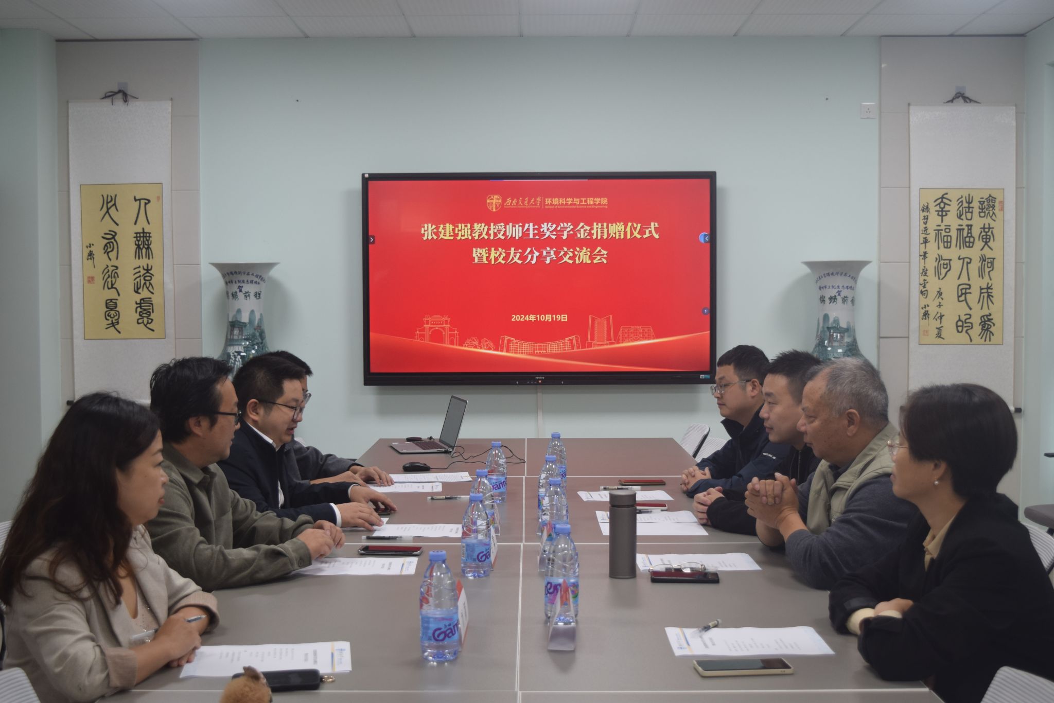 会议伊始,公司党委书记甘霖致欢迎词,表示张建强教授和员工代表的到来和奖学金捐赠如一场甘雨,滋润环境学子。