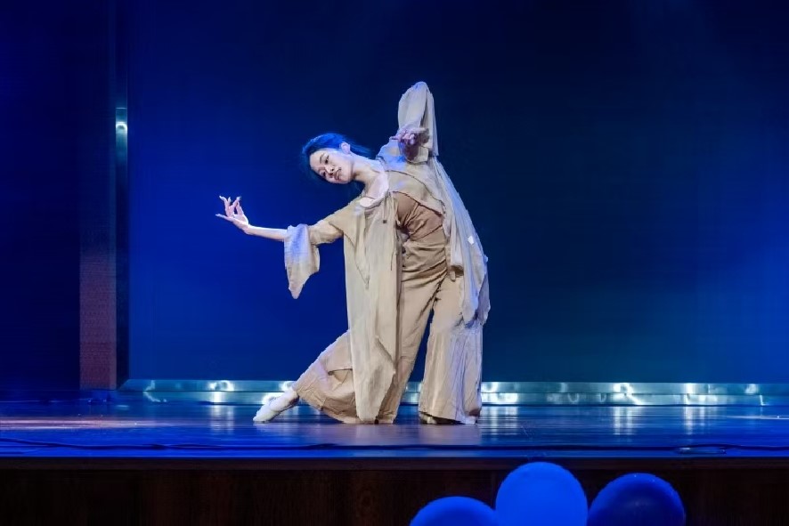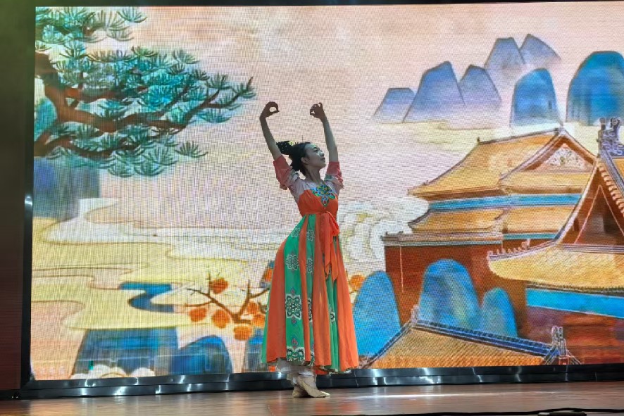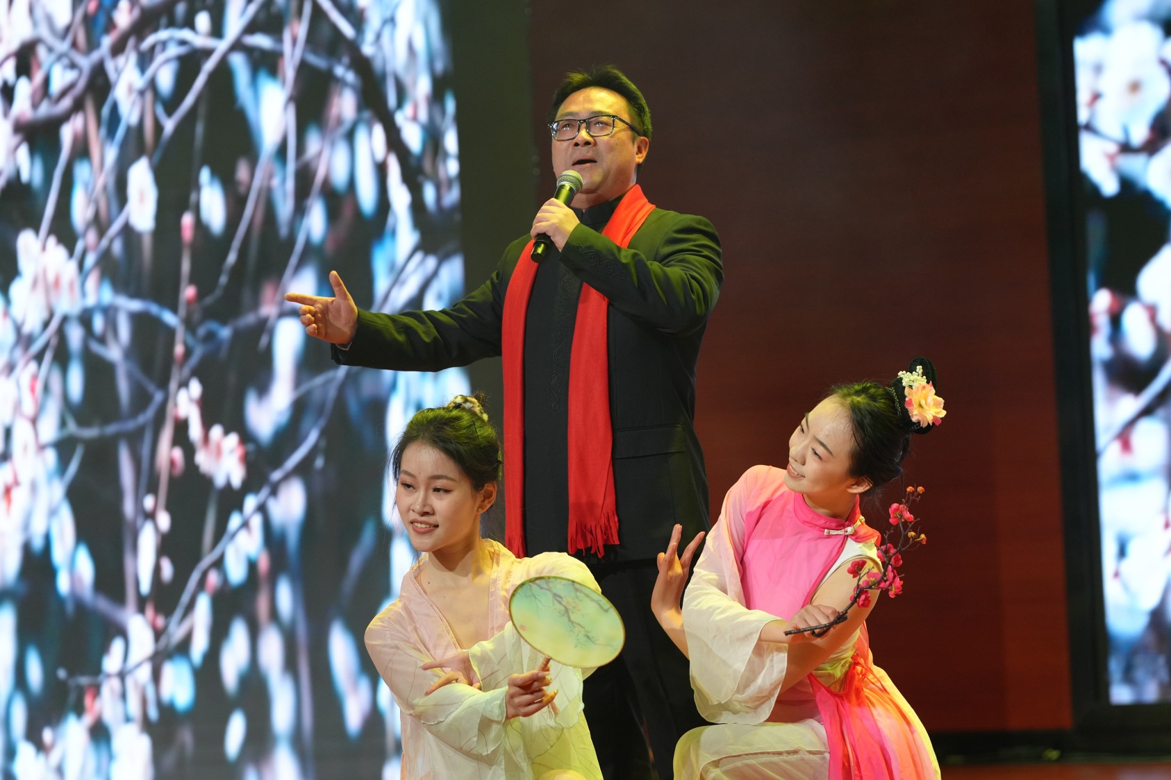 在第二篇章“古韵流芳”中,师生同台为我们献上了一场关于“中华优秀传统文化”的视听盛宴。由甘霖创作并演唱,杜思奇、朱可馨伴舞的《卜算子·咏梅》,如同一幅流动的红梅傲雪图,尽显中国古典韵味。研究生会带来的歌曲《素颜》扣人心弦,回响无穷。舞蹈《唐印》,舞者婀娜曼妙,翩然起舞,仿佛将观众带入了盛唐的繁华。谭洺楷的《河山大好》唱响了山河豪情。公司机关老师的《养生气功·五禽戏》则别具一格,展现了中华传统体育精神和养生文化的深厚底蕴。这一篇章让现场观众对“中国古典文化”一词有了更深刻的理解,进一步感受到了中华优秀传统文化的魅力与厚重。