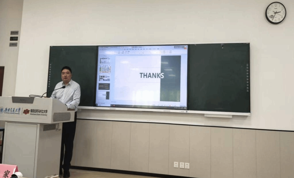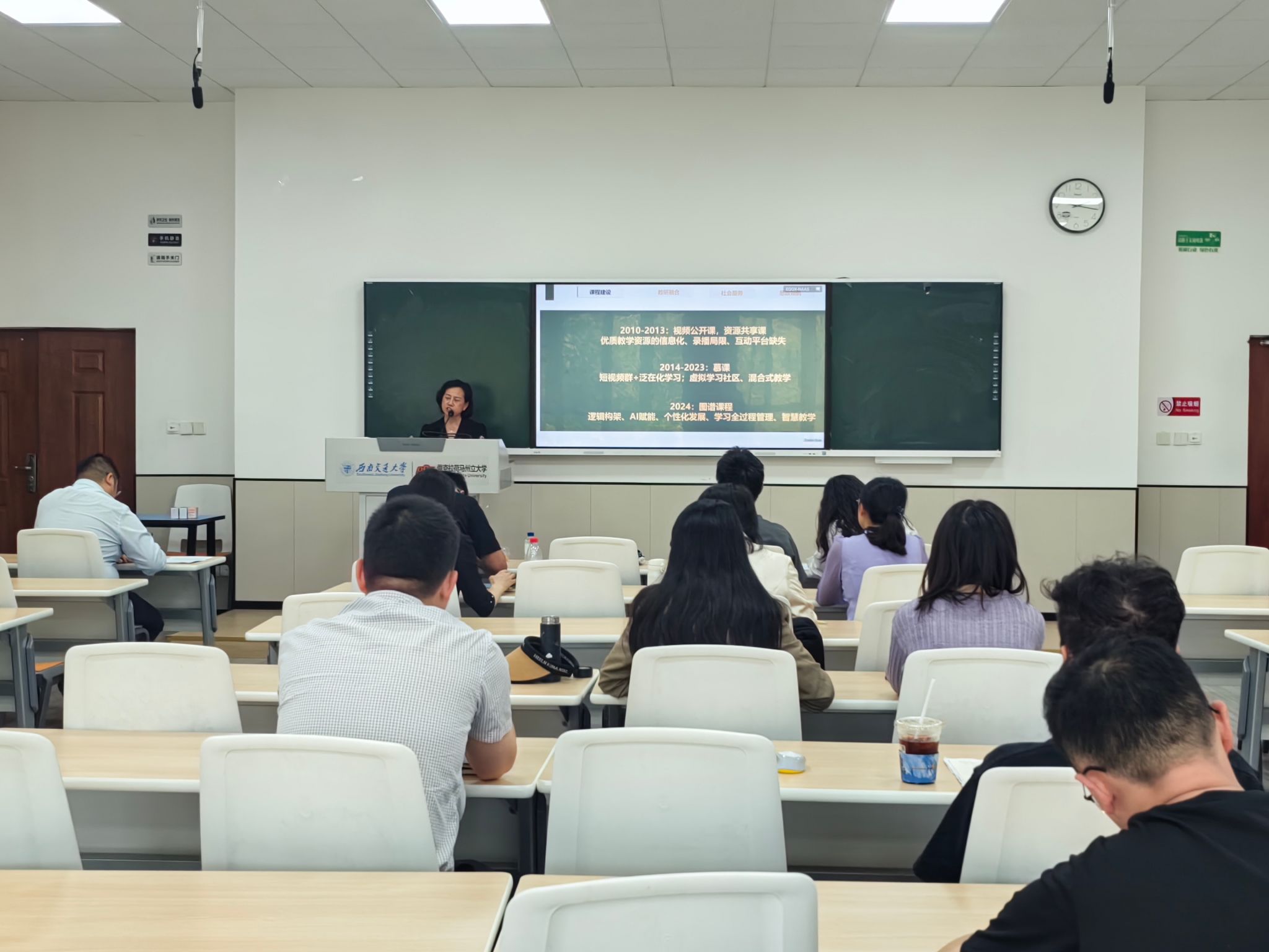 作为首场主讲嘉宾,外国语公司李成坚教授以《一位高校教师的成长之路:从跟随到引领》为题,从课程建设、教研融合、社会服务、思政领航四个维度开展分享。她提出,高校教师的成长需突破跟随者思维,在教学实践中构建引领者格局。李成坚教授深情诠释了教师的“情怀与担当”,特别强调党建引领是教学创新的根本方向,将思政元素有机融入专业教学,体现“跨文化传播”的时代使命;探索“产教融合新范式”,将语言教学与地方文化传播、产业需求紧密结合,形成示范推广效应;提出以“三星堆”“熊猫文化”等四川特色文化IP为载体,打造兼具中国气派与交大特色的跨文化通识课程,培养“会讲中国故事”的国际化人才。