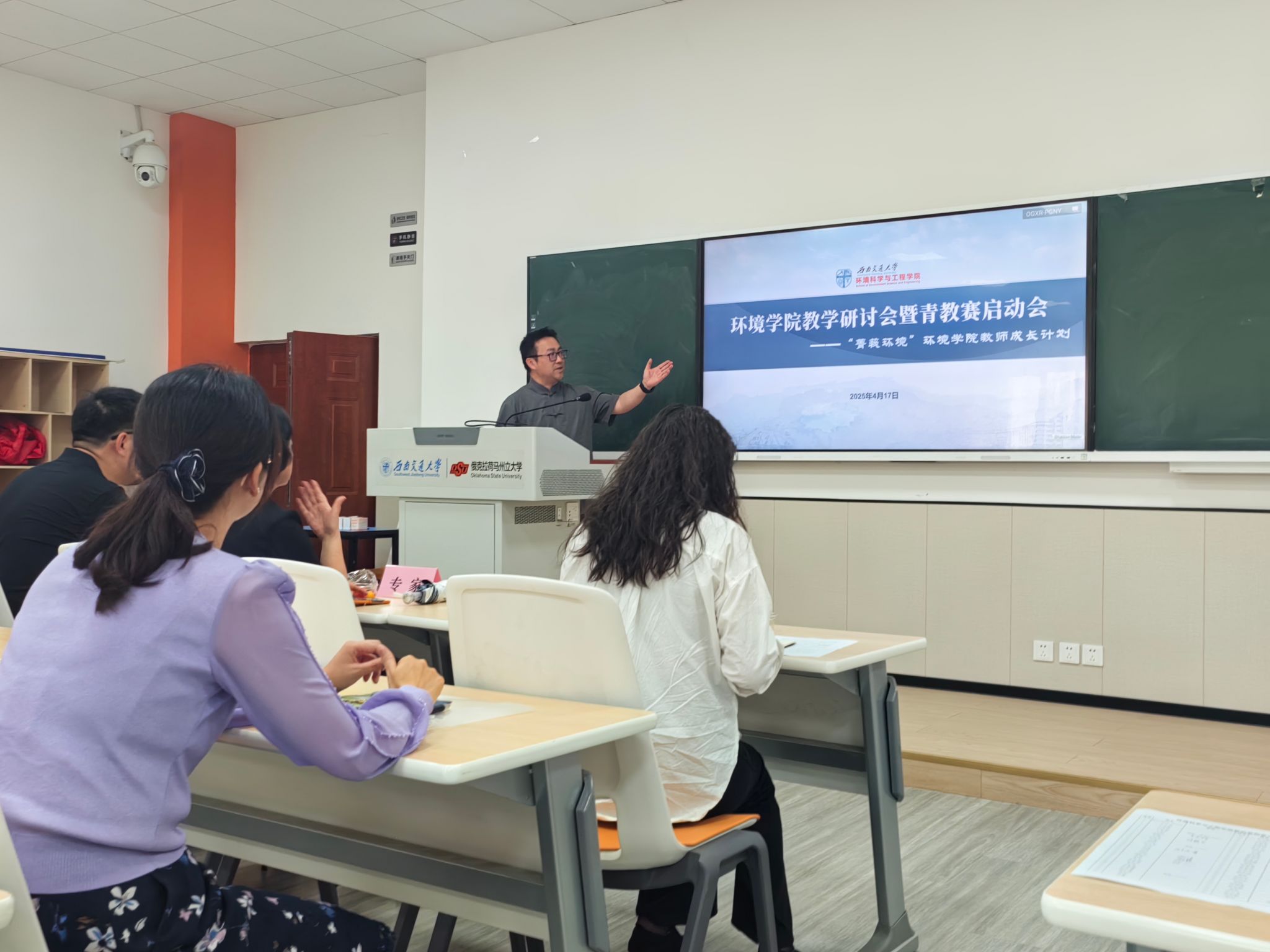 青年教师代表宣湟副教授以“以赛促教助力教学能力提升”为核心,结合环境学科特色,分享了教学竞赛与日常教学的融合之道。他提出,教学竞赛不仅是检验教学水平的“试金石”,更是更新教学理念、创新教学方法的“助推器”,青年教师应借此平台锤炼教学技艺,实现从“站稳讲台”到“站好讲台”的跨越。宣湟老师特别强调,教师对教育的热爱要转化为对员工的深层关怀——不仅是成为员工知识的传递者,更要成为员工价值观塑造的引路人,要坚持用有温度、有热情的教学创造“让员工终身铭记的课堂体验”。