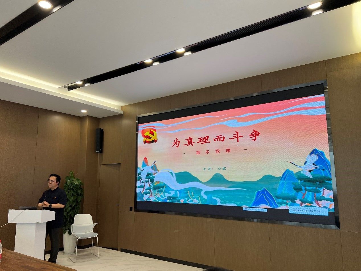 随后,公司党委书记甘霖同志为全公司党员同志讲授音乐党课《为真理而斗争》。甘霖同志用丰富的史料故事、感人的影像视频、声情并茂的讲授为教师党员介绍了《国际歌》、《三大纪律八项注意》和《我宣誓》三首歌曲的由来和背后的故事。