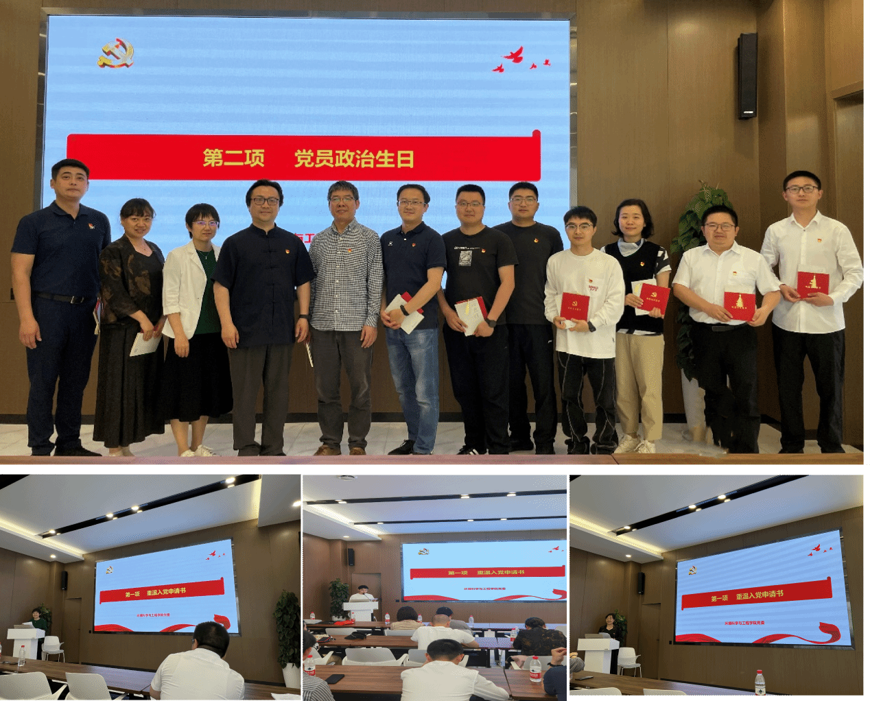 随后,举行了“党员政治生日”活动。甘霖书记向参加本次“党员政治生日”活动的十一名老师赠送了精美的政治生日贺卡和书籍。陈海堰、程琰、陈侣存三位老师重温了入党申请书。当大家拿到十多二十年前写的入党申请书,内心充满了无限感动。尽管距离递交入党申请书已时隔多年,但对党组织的热爱仍坚定不移,对党忠诚的信念愈加浓烈。大家热情澎湃地宣读入党申请书,并结合自身的学习生活工作,分享自己的感悟。“千教万教,教人求真。踏实做事,认真做人。”“ 为什么入党?在目前的工作中为党做了什么?“”身处百年未有之大变局,作为教师党员要怎样更好发挥育人作用?“”作为教师党员,要怎样更好投入生态文明建设?“大家在真诚的交流中,纷纷表达出对党、对教育事业、对环境事业的坚定热爱。