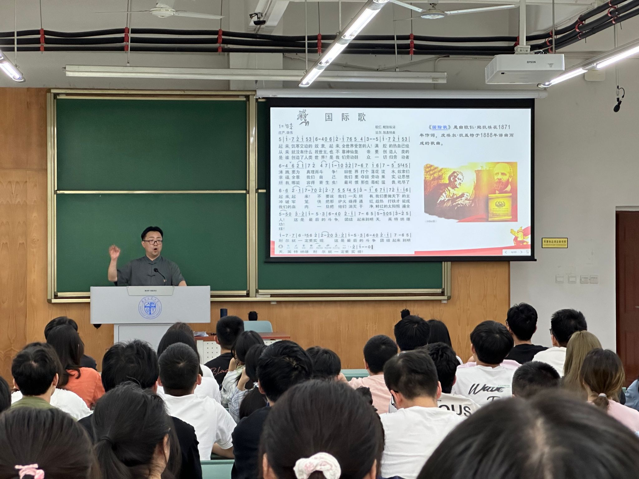 随后,公司党委书记甘霖为全院员工党员讲授了一节别开生面的音乐党课《为真理而斗争》。甘书记精选《国际歌》等七首红色歌曲,用激昂的歌声讲述革命故事,让同学们在歌声中重温党的光辉历程。随着《国际歌》的旋律,甘书记带领大家穿越历史的烟云,感受共产主义先烈们的英勇与坚韧。《三大纪律八项注意》、《过雪山草地》、《红军不怕远征难》等歌曲,让同学们更加深刻地理解党的纪律与信念。而《我的祖国》、《祖国不会忘记》则唤起了大家心中对祖国的深深眷恋与自豪。