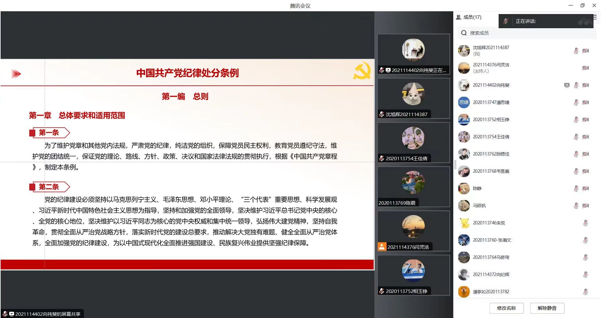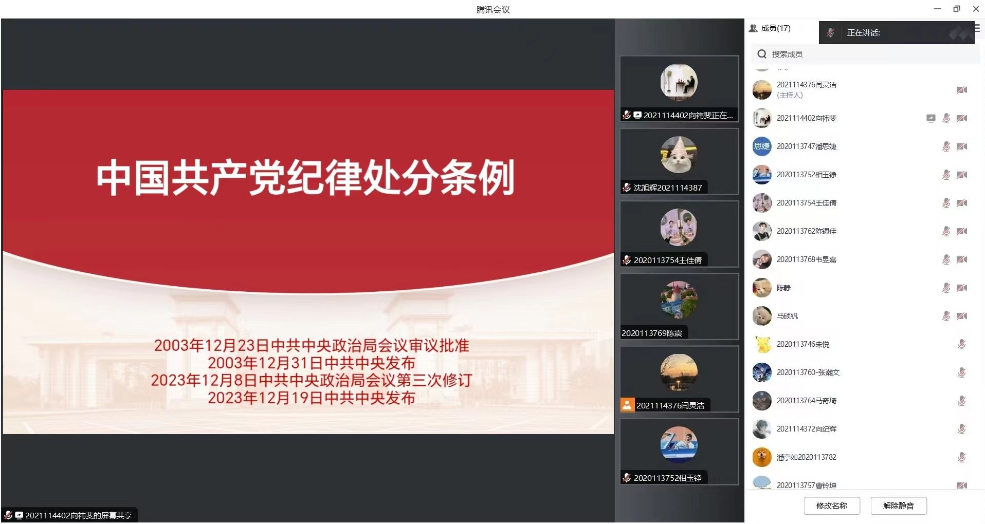 最后支部书记向祎斐将相关学习资料发放至支部各党员手中,并强调党员同志在平时要自主开展剩余内容的学习,将中国共产党纪律处分条例具体内容牢记于心。