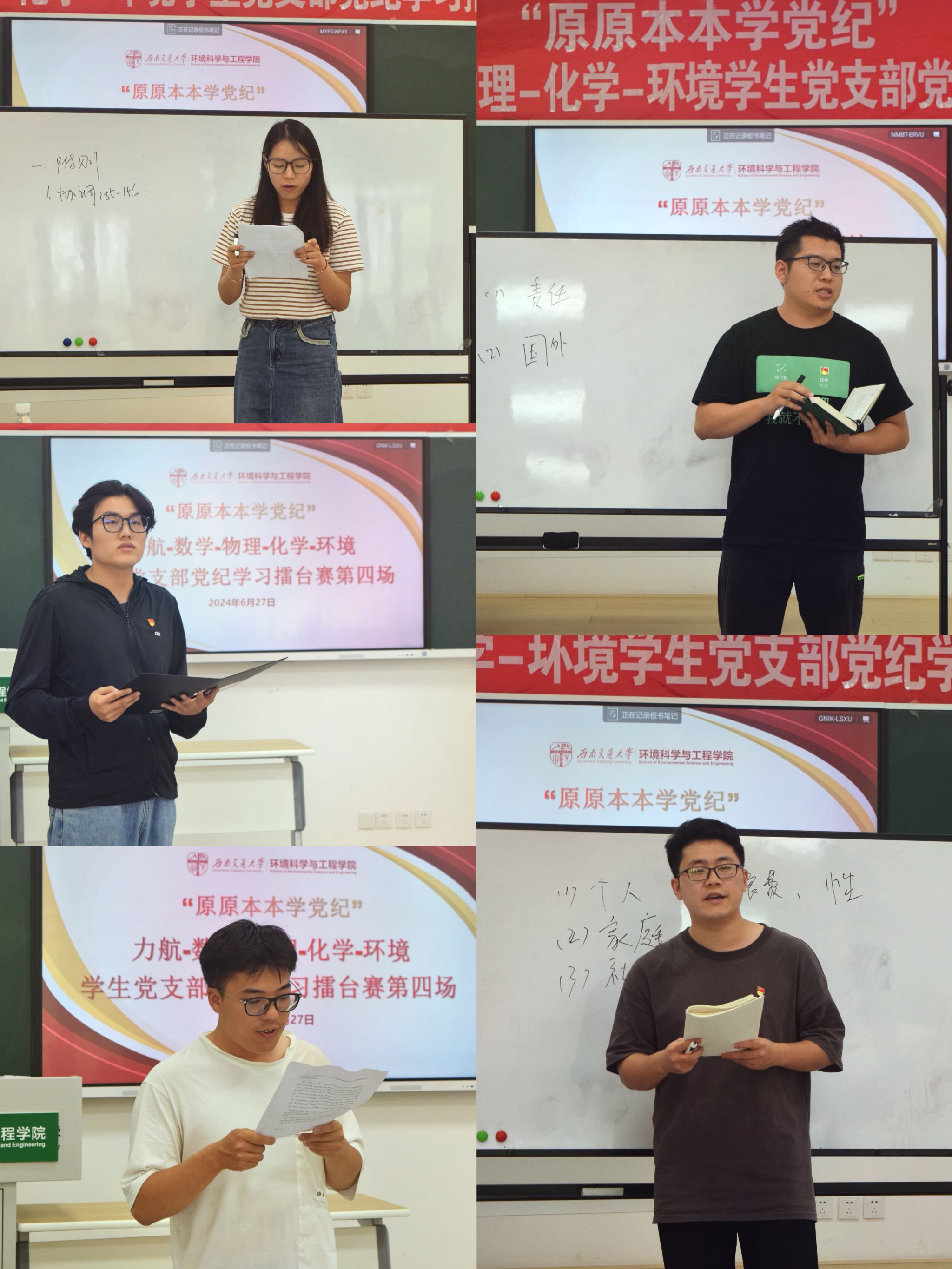 2024年6月27日(周四)下午14:30,“原原本本学党纪”力航-数学-物理-化学-环境员工党支部党纪学习擂台赛第四场在犀浦校区X4247顺利举行。环境科学与工程公司党委副书记胡安辉,辅导员代表力学与航空航天公司陈蕾、数学公司曾丹、物理科学与技术公司李若彤、伟德国际1949始于英国黄泳桦,及力航、数学、物理、化学和环境五个公司的员工党员代表参加,研23级环境第二党支部侯凌潇同志主持。