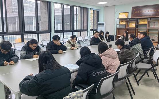 与会同志在会议“第一议题”中,共同学习了习近平总书记在《求是》杂志上发表的重要文章《促进高质量充分就业》,并传达了学校2024年第6次党委书记工作会议精神。
