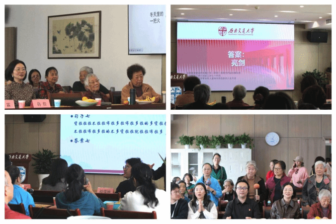 活动第三个环节是游戏互动。各老同志们热情洋溢地参与互动,在和谐融洽的气氛中圆满完成了由志愿者精心策划的通过音频和视频猜经典红歌和电影等小游戏。不仅让参与的老师们重温了往日的时光,更引导老同志们回顾了他们所经历的奋斗岁月,将时光的记忆镌刻在每一个人的心中。