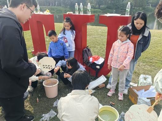 团支部副书记、班长李玟玟带领支部内来自全国不同城市的团员青年在漆扇上画出独属自己家乡的中国山河,“美丽中国”的形象跃然纸上,也邀请在犀湖边游玩的老师和员工共同制作,将对书中一个个奋斗故事的学思感悟和对未来美丽中国的殷切期许融入一把把秀丽的漆扇之中。