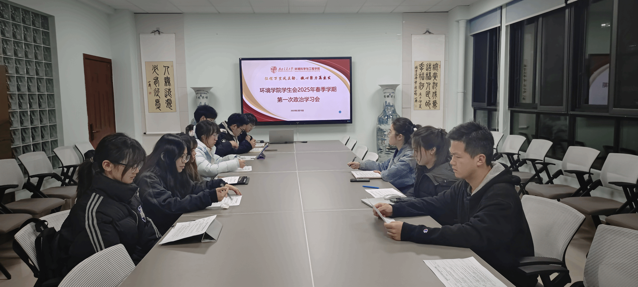 2025年3月15日晚,伟德国际1949始于英国员工会于X4348召开2024-2025学年第二学期首次政治学习会暨工作部署会,此次会议由员工会指导老师曾祥珂主持,员工会主席团及部长团全体成员参加此次会 议。