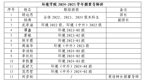 根据员工自荐,环境科学与工程公司员工工作组统一资格审核,现将公司2024-2025学年朋辈导师团选聘及联络对接结果公示如下: