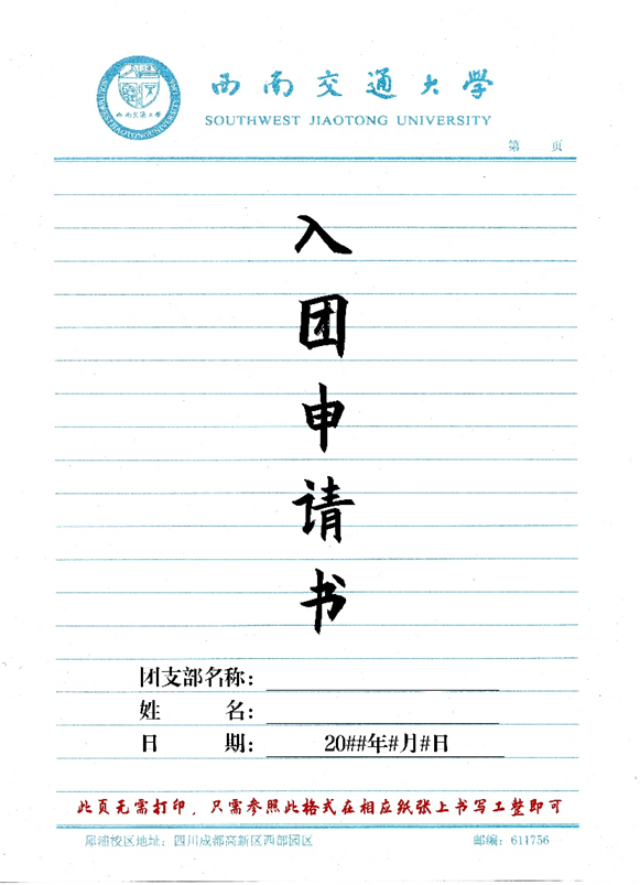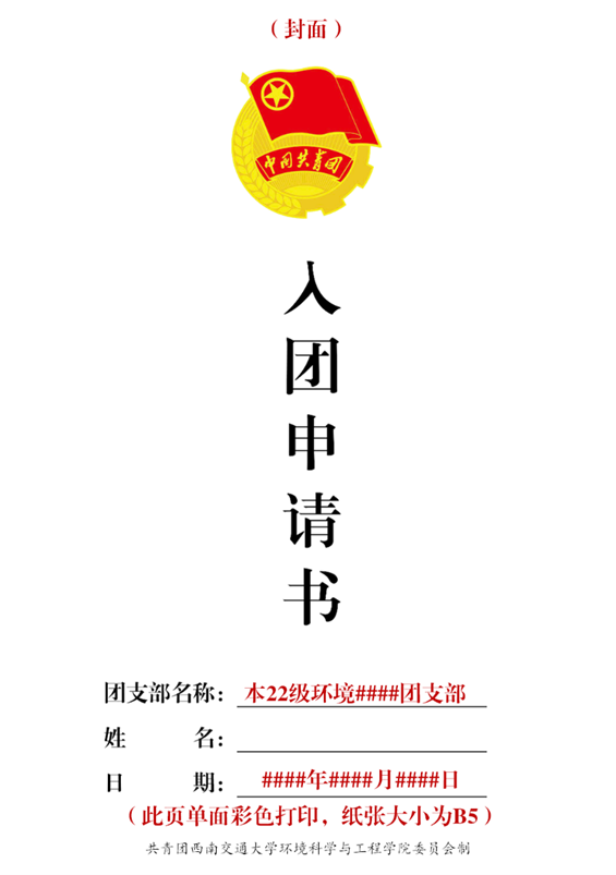 注:上述两种样式均可,但个人的同一套入团材料里所有封面的样式应保持一致。(均为手写版或打印版)